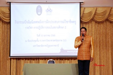 วันที่ 10 มกราคม 2568 ผู้ช่วยศาสตราจารย์ ดร. นเรศ ขันธะรี เป็นประธานในพิธีเปิดกิจกรรมปัจฉิมนิเทศนักศึกษาหลังการฝึกประสบการณ์วิชาชีพครู รายวิชา การปฏิบัติการสอนในสถานศึกษา 2 ณ ห้องประชุมชั้น 4 อาคาร 52 อาคารวิทยาศาสตร์สุขภาพ คณะพยาบาลศาสตร์ มหาวิทยาลัยราชภัฏอุบลราชธานี