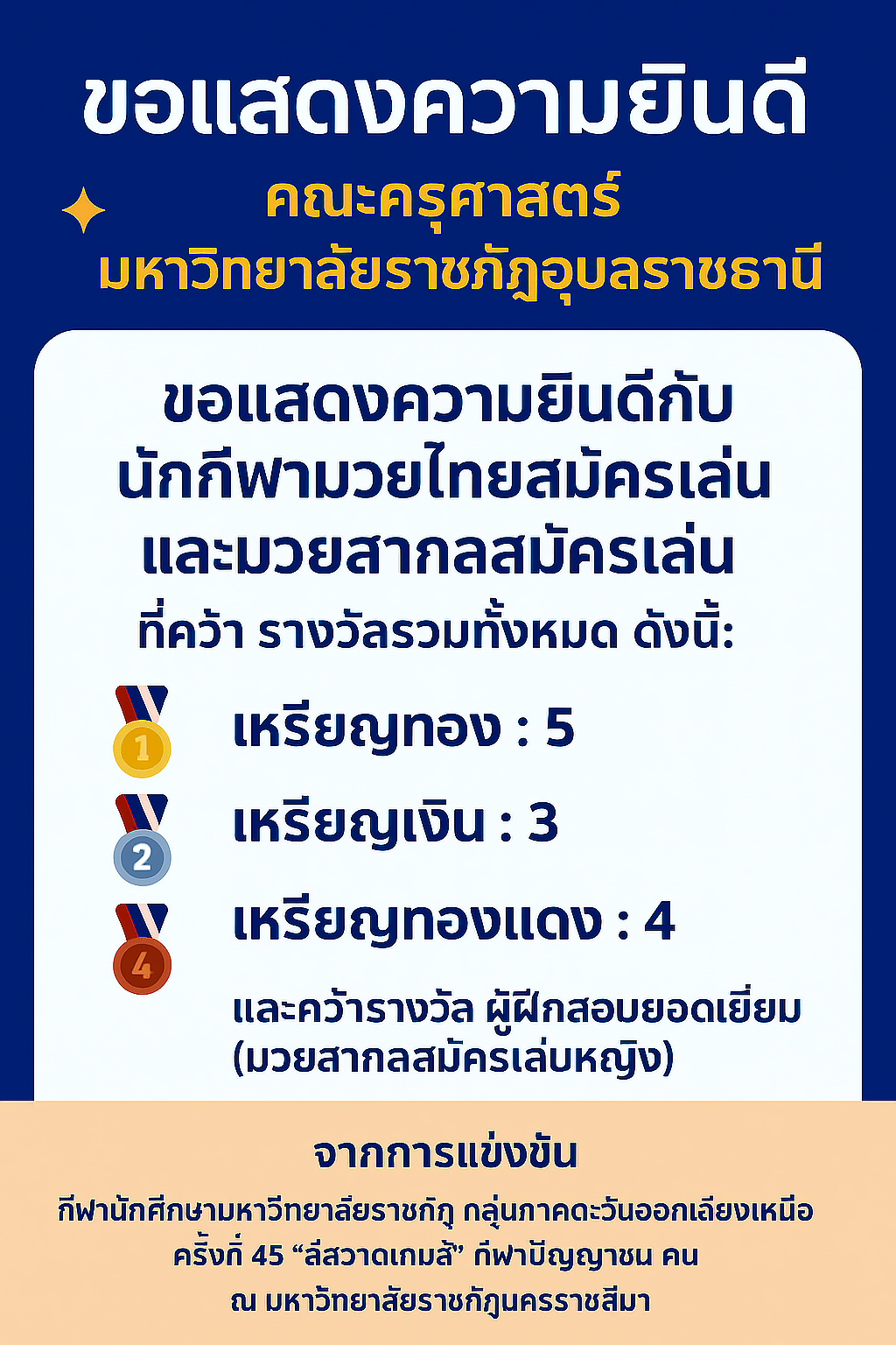 จากการแข่งขัน กีฬานักศึกษามหาวิทยาลัยราชภัฏ กลุ่มภาคตะวันออกเฉียงเหนือ ครั้งที่ 45