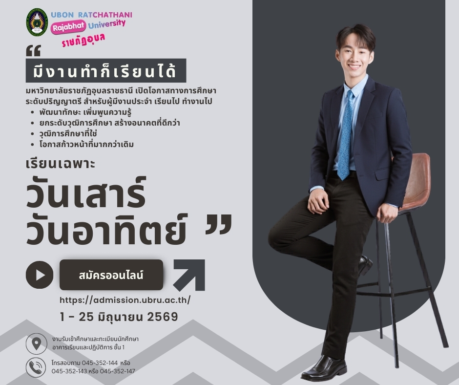 มหาวิทยาลัยราชภัฏอุบลราชธานี เปิดโอกาสทางการศึกษา สำหรับผู้ที่มีงานประจำหรือผู้สะดวกเรียนเฉพาะวันเสาร์–อาทิตย์