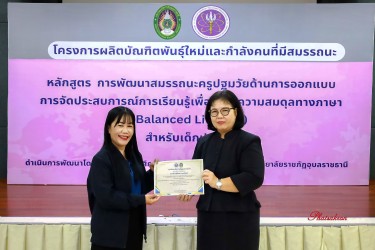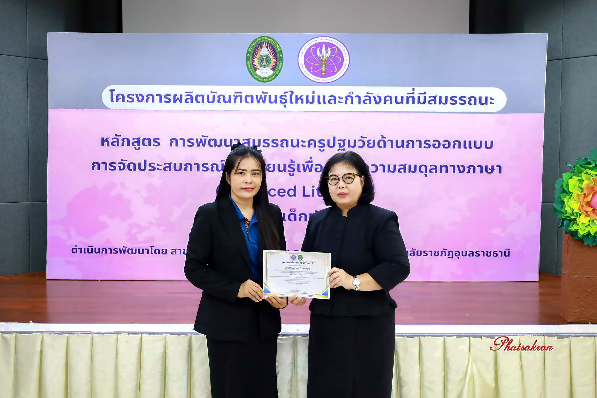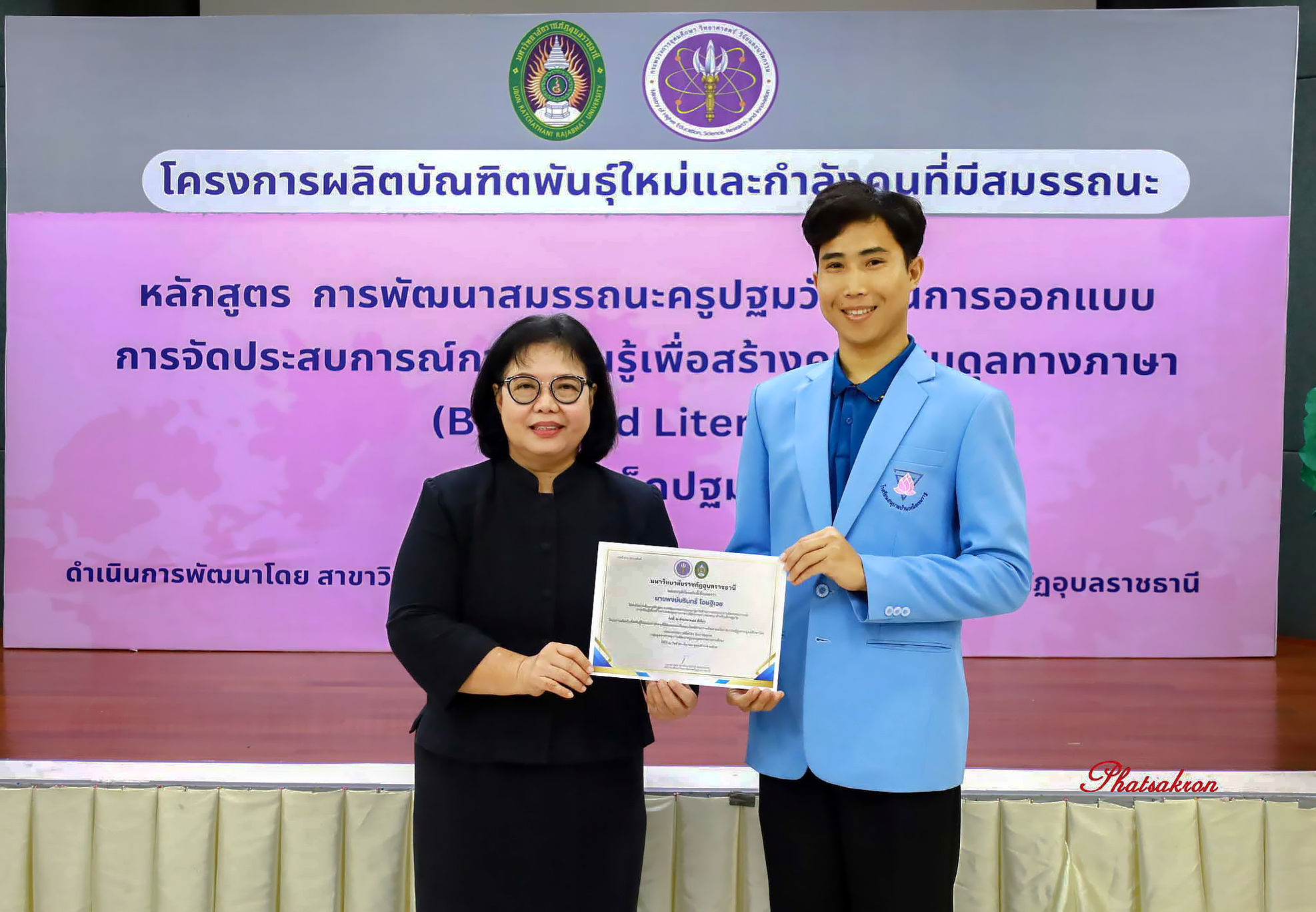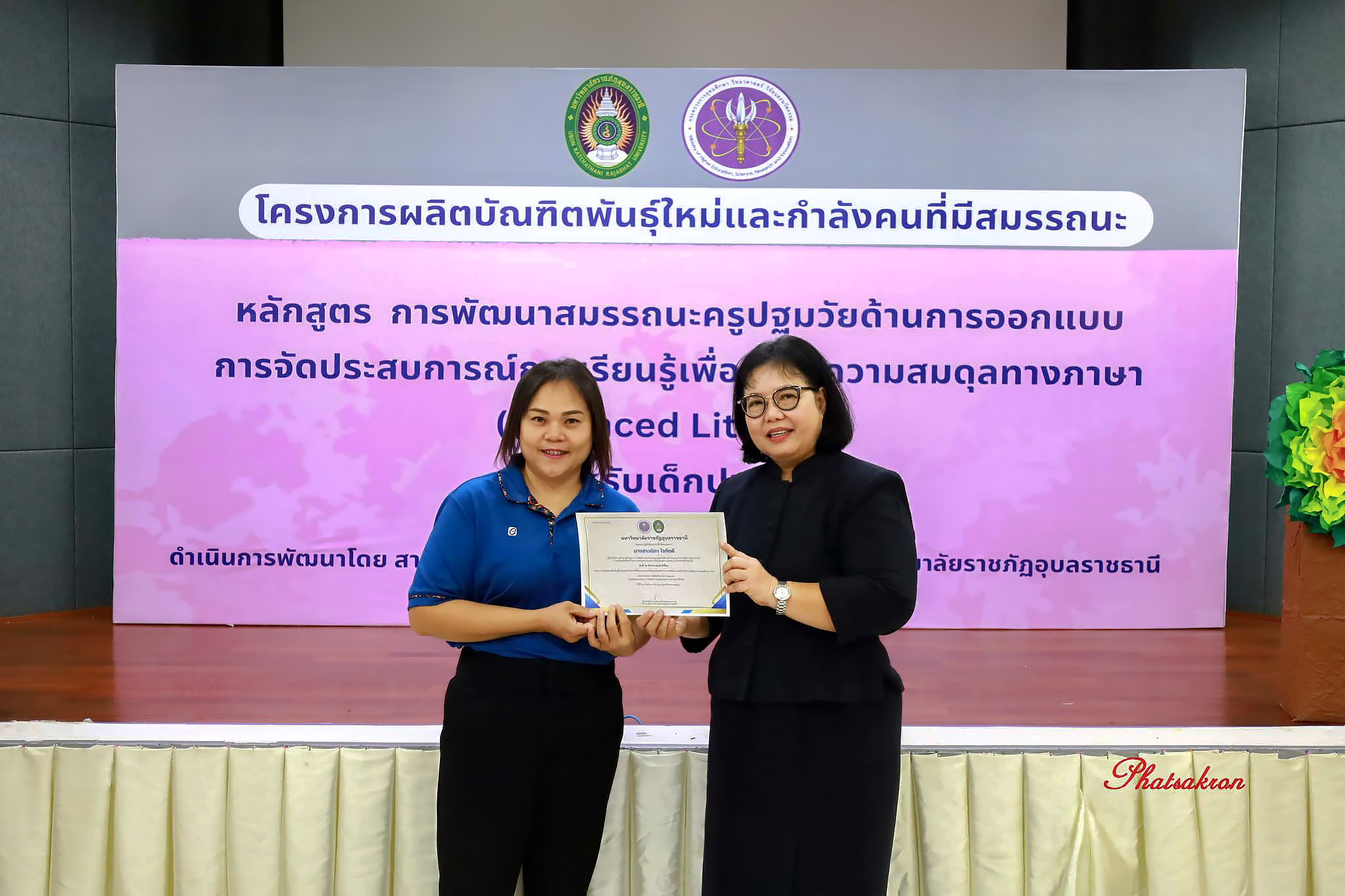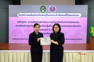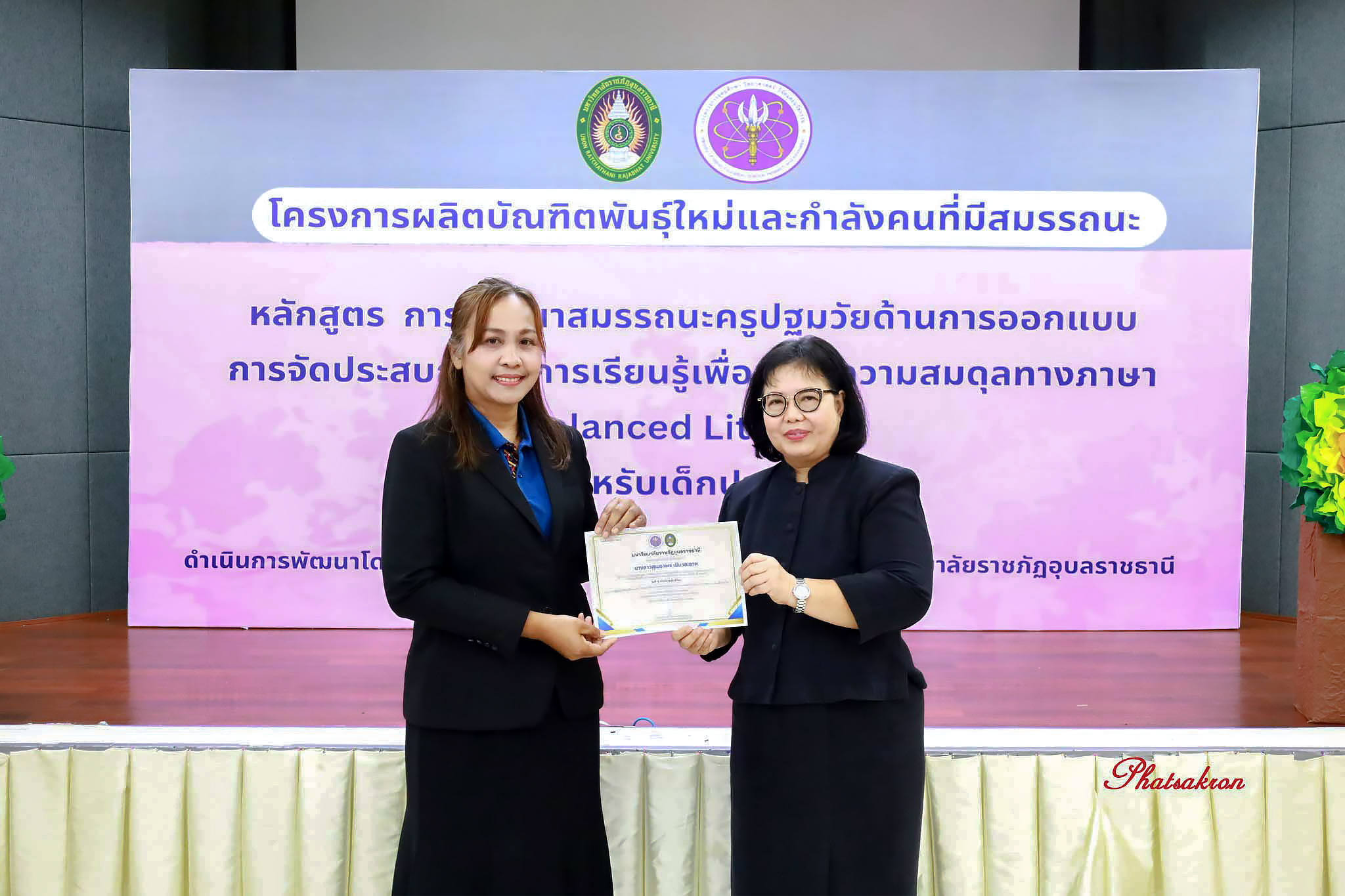 วันที่ 22 มีนาคม 2569 ณ ห้องประชุมสัตตบงกช คณะครุศาสตร์ มหาวิทยาลัยราชภัฏอุบลราชธานี มหาวิทยาลัยราชภัฏอุบลราชธานี จัดพิธีมอบประกาศนียบัตรแก่ผู้ผ่านการอบรมหลักสูตรประกาศนียบัตร (Non-Degree) ภายใต้โครงการผลิตบัณฑิตพันธุ์ใหม่และกำลังคนที่มีสมรรถนะ โดยได้รับเกียรติจาก รองศาสตราจารย์มาลี ไชยเสนา รองอธิการบดี เป็นประธานในพิธีหลักสูตรดังกล่าวคือ “การพัฒนาสมรรถนะครูปฐมวัยด้านการออกแบบและการจัดประสบการณ์การเรียนรู้เพื่อสร้างความสมดุลทางภาษา (Balanced Literacy) สำหรับเด็กปฐมวัย รุ่นที่ 2” ซึ่งมุ่งเน้นการพัฒนาศักยภาพครูให้สามารถออกแบบการเรียนรู้ที่สอดคล้องกับพัฒนาการของเด็กอย่างรอบด้าน ทั้งด้านภาษา ความคิด และทักษะชีวิต