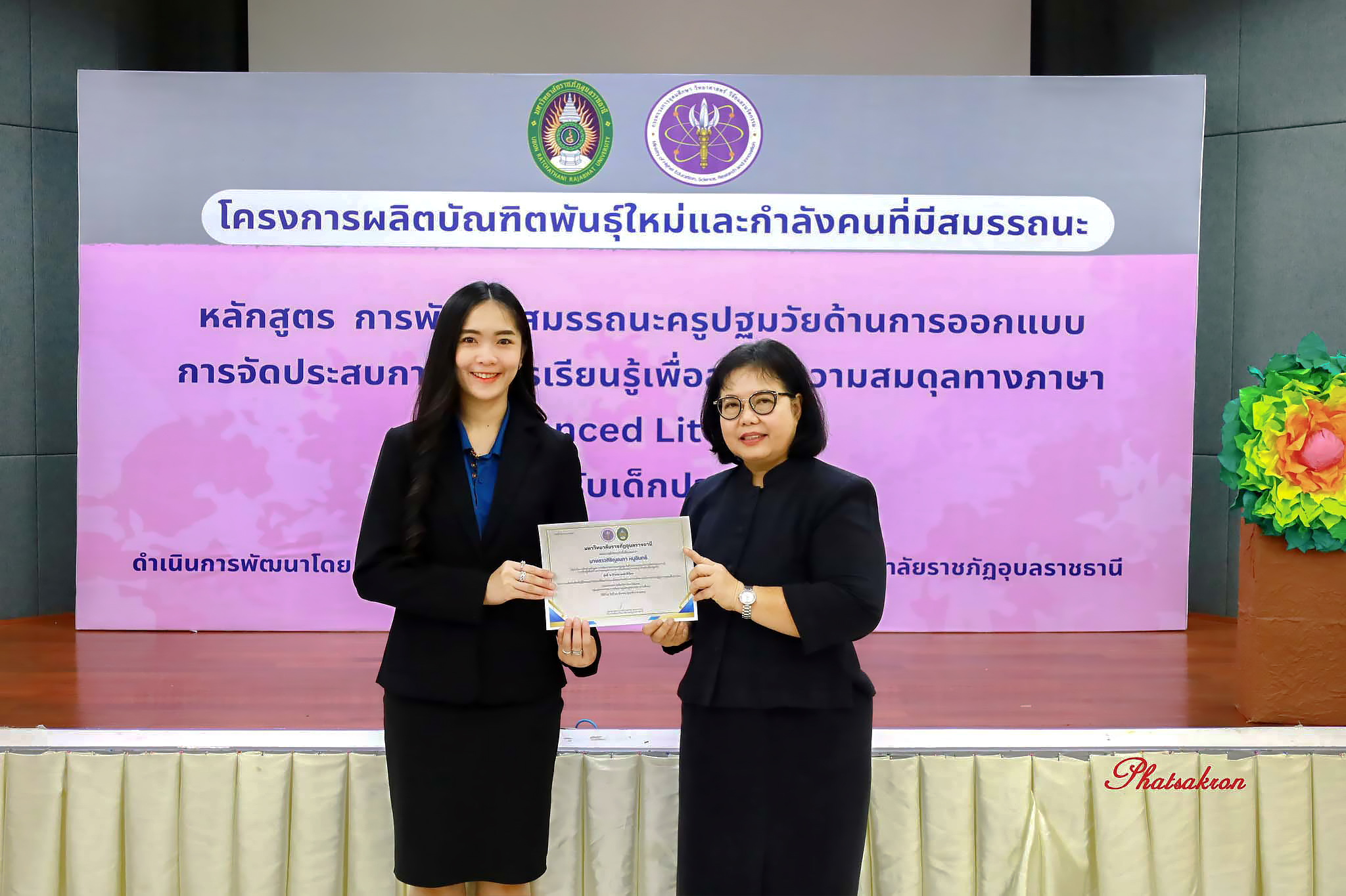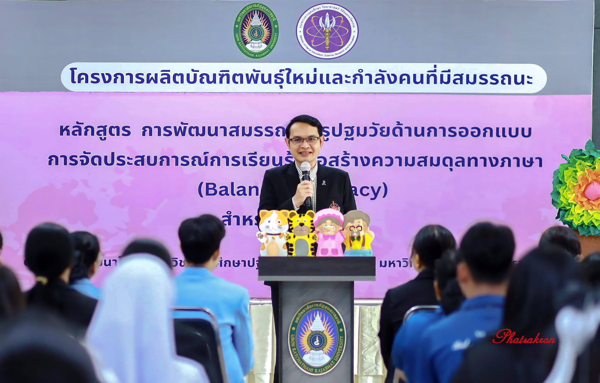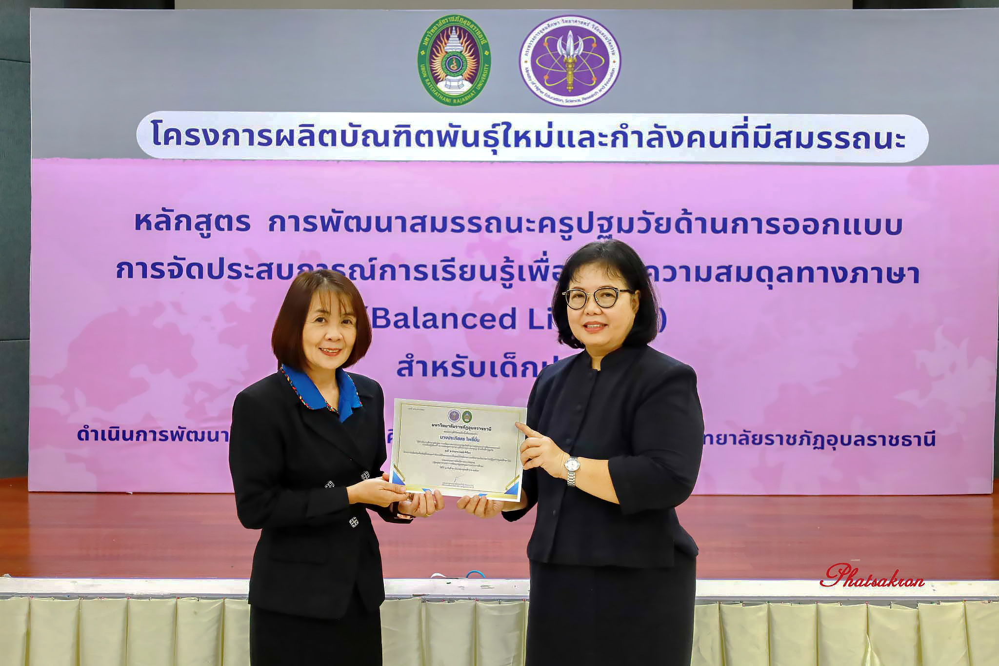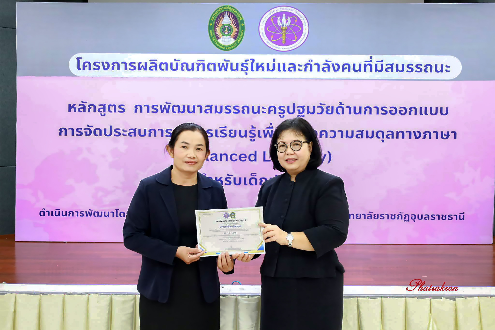 วันที่ 22 มีนาคม 2569 ณ ห้องประชุมสัตตบงกช คณะครุศาสตร์ มหาวิทยาลัยราชภัฏอุบลราชธานี มหาวิทยาลัยราชภัฏอุบลราชธานี จัดพิธีมอบประกาศนียบัตรแก่ผู้ผ่านการอบรมหลักสูตรประกาศนียบัตร (Non-Degree) ภายใต้โครงการผลิตบัณฑิตพันธุ์ใหม่และกำลังคนที่มีสมรรถนะ โดยได้รับเกียรติจาก รองศาสตราจารย์มาลี ไชยเสนา รองอธิการบดี เป็นประธานในพิธีหลักสูตรดังกล่าวคือ “การพัฒนาสมรรถนะครูปฐมวัยด้านการออกแบบและการจัดประสบการณ์การเรียนรู้เพื่อสร้างความสมดุลทางภาษา (Balanced Literacy) สำหรับเด็กปฐมวัย รุ่นที่ 2” ซึ่งมุ่งเน้นการพัฒนาศักยภาพครูให้สามารถออกแบบการเรียนรู้ที่สอดคล้องกับพัฒนาการของเด็กอย่างรอบด้าน ทั้งด้านภาษา ความคิด และทักษะชีวิต