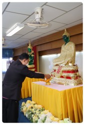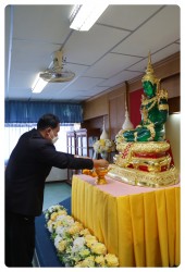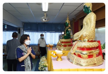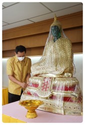 รองศาสตราจารย์สนธยา เกาะสมบัติ รองอธิการบดี รักษาการแทนคณบดีคณะครุศาสตร์ ประธานรับมอบพระพุทธมหามณีรัตนปฏิมากร หรือพระแก้วมรกต จำนวน 2 องค์ ปางฤดูร้อนและฤดูหนาว ซึ่งนายแพทย์ไชยยันตร์ – ผศ.ดร.วลัยพร พรพงศ์ มอบให้ประดิษฐาน ณ ห้อง 32.701คณะครุศาสตร์ มหาวิทยาลัยราชภัฏอุบลราชธานี วันอังคารที่ 9 พฤศจิกายน 2564 เวลา 13.30น.