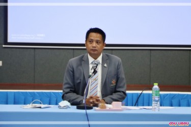 ผศ.ดร.นเรศ ขันธะรี คณบดีคณะครุศาสตร์ ประธานการประชุมอนุกรรมการเทคนิคกีฬาวอลเลย์บอลในร่มและกีฬาวอลเลย์บอลชายหาด ในการแข่งขันกีฬามหาวิทยาลัยอาเซียน ครั้งที่ 20 ณ ห้องประชุมสัตตบงกช อาคารศูนย์การเรียนรู้เพื่อการพัฒนาครู คณะครุศาสตร์ มหาวิทยาลัยราชภัฏอุบลราชธานี วันอังคารที่ 12 กรกฎาคม 2565 เวลา13.30น.