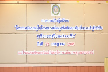 โครงการพัฒนาครูในโครงการผลิตครูเพื่อพัฒนาท้องถิ่น ระยะเข้าสู่วิชาชีพ รุ่นที่ ๖ (บรรจุปี ๒๕๖๔) ระยะที่ ๒ วันที่ ๒๒ กรกฎาคม ๒๕๖๖ ณ โรงแรมกิจตรงวิลล์ รีสอร์ท อ.เมือง จ.อุบลราชธานี วิทยากรโดย รองศาสตราจารย์ ดร.ดนิตา ดวงวิไล ผู้ช่วยคณบดีฝ่ายพัฒนา วิชาชีพครูและบริการวิชาการ คณะศึกษาศาสตร์ มหาวิทยาลัยขอนแก่น