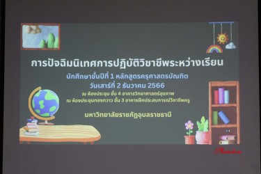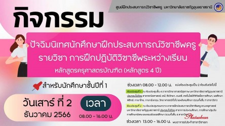 วันนี้ ๒ ธันวาคม พ.ศ.๒๕๖๖ ที่ห้องประชุมชั้น ๔ อาคารวิทยาศาสตร์สุขภาพ มหาวิทยาลัยราชภัฏอุบลราชธานี รศ.ดร.มาลี ไชยเสนา รองอธิการบดี เป็นผู้แทนอธิการบดีฯ เป็นประธานฯ เปิดกิจกรรม ปัจฉิมนิเทศนักศึกษาฝึกประสบการณ์วิชาชีพครู รายวิชา การฝึกปฏิบัติวิชาชีพระหว่างเรียน หลักสูตรครุศาสตรบัณฑิต ( หลักสูตร ๔ ปี )