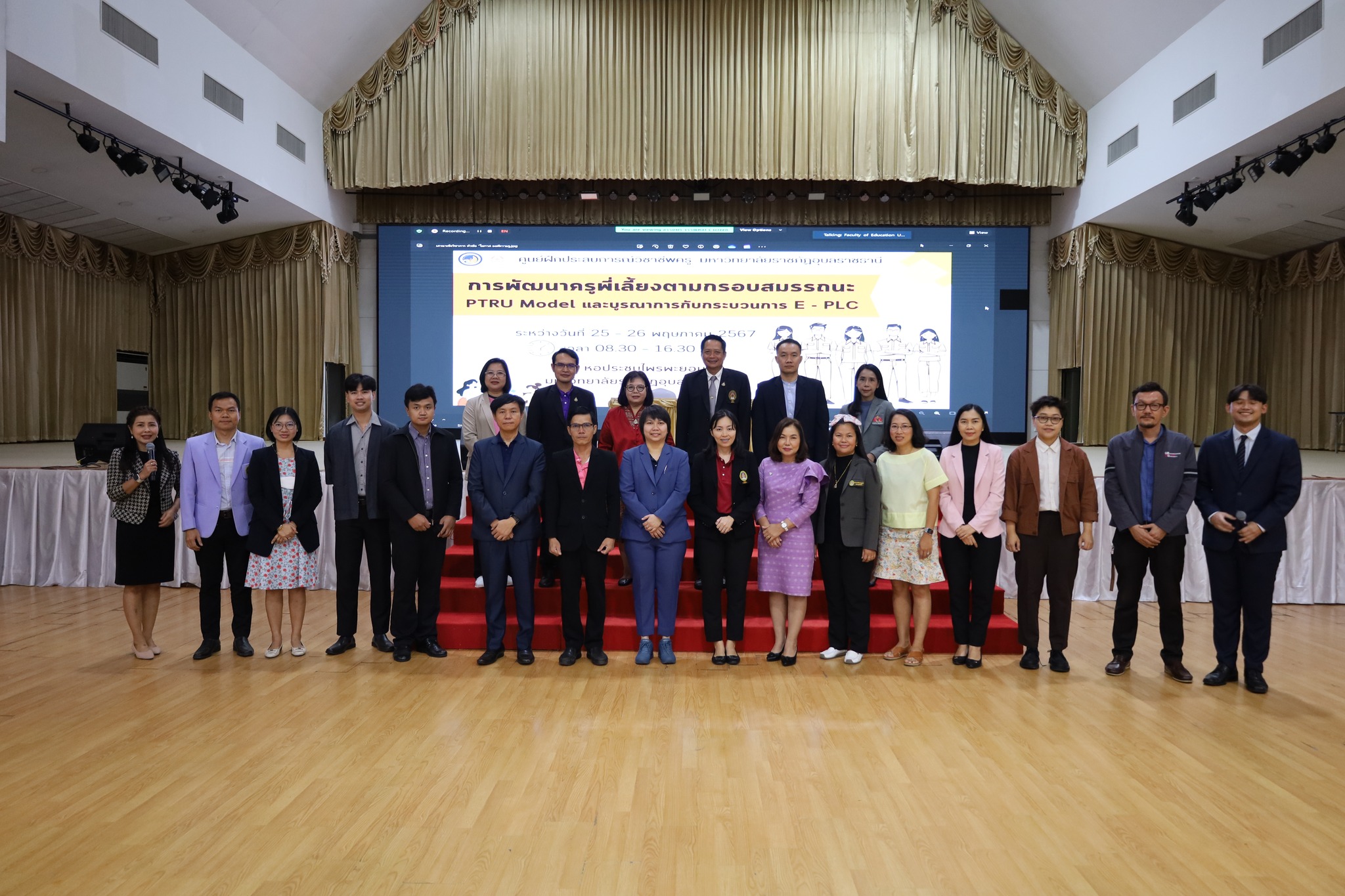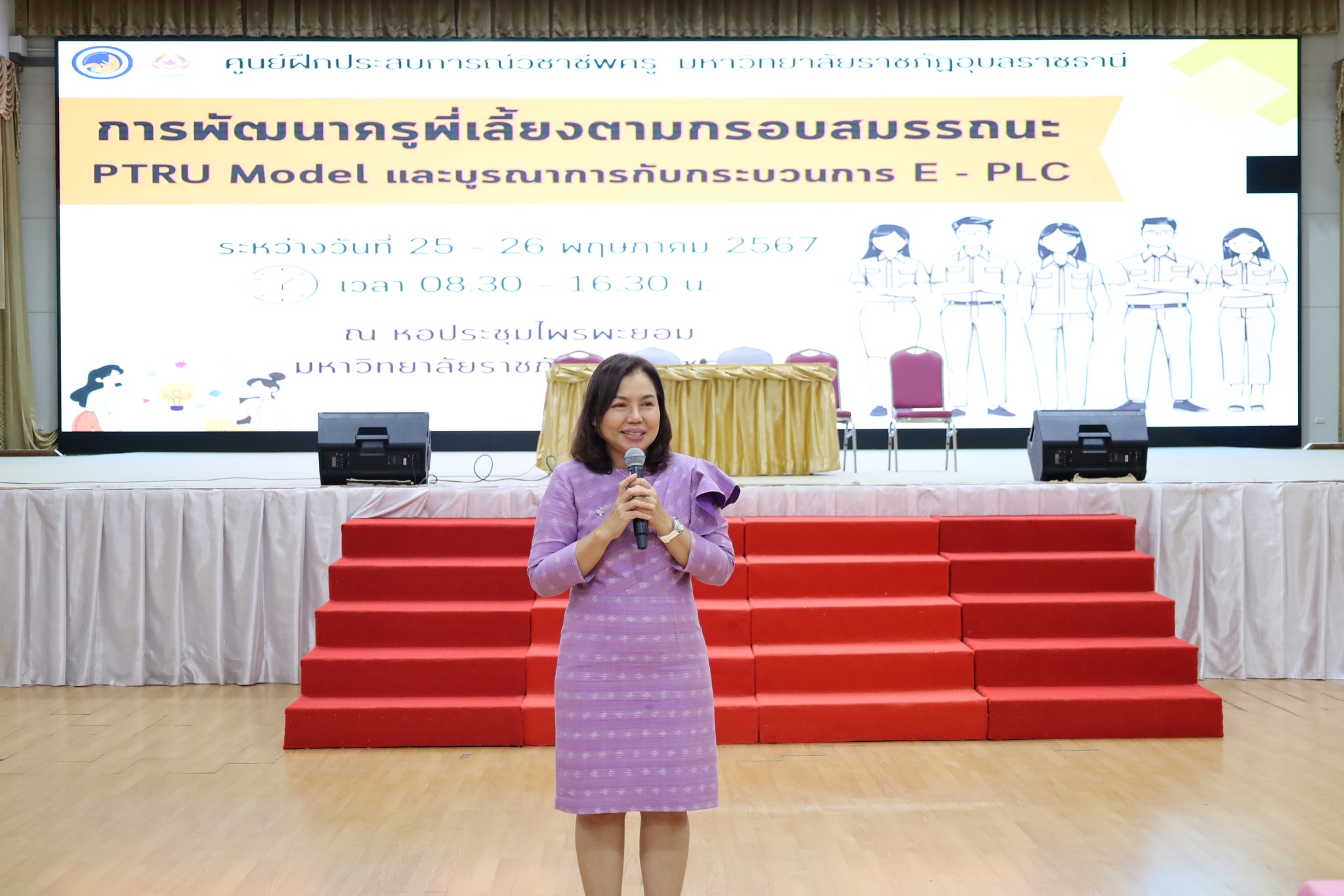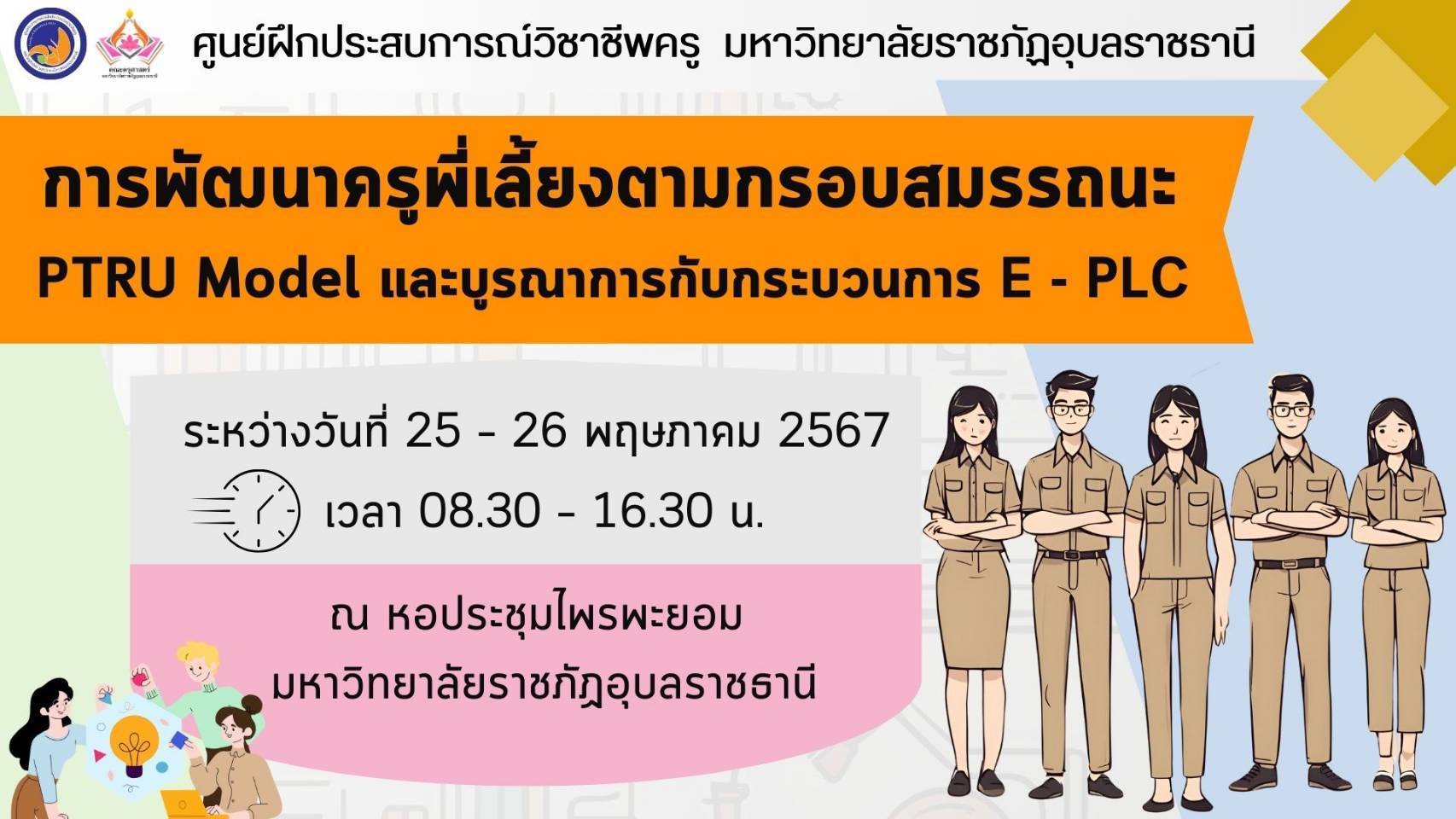 วันที่ ๒๕ พฤษภาคม ๒๕๖๗ เวลา ๐๙.๐๐ น. รองศาสตราจารย์ดร.มาลี ไชยเสนา รองอธิการบดีฝ่ายวิชาการ มหาวิทยาลัยราชภัฏอุบลราชธานี ได้ให้เกียรติเป็นประธานเปิดโครงการพัฒนาครูพี่เลี้ยงตามกรอบสมรรถนะ PTRU Model และบูรณาการกับกระบวนการ E – PLC ณ หอประชุมไพรพะยอม มหาวิทยาลัยราชภัฎอุบลราชธานี