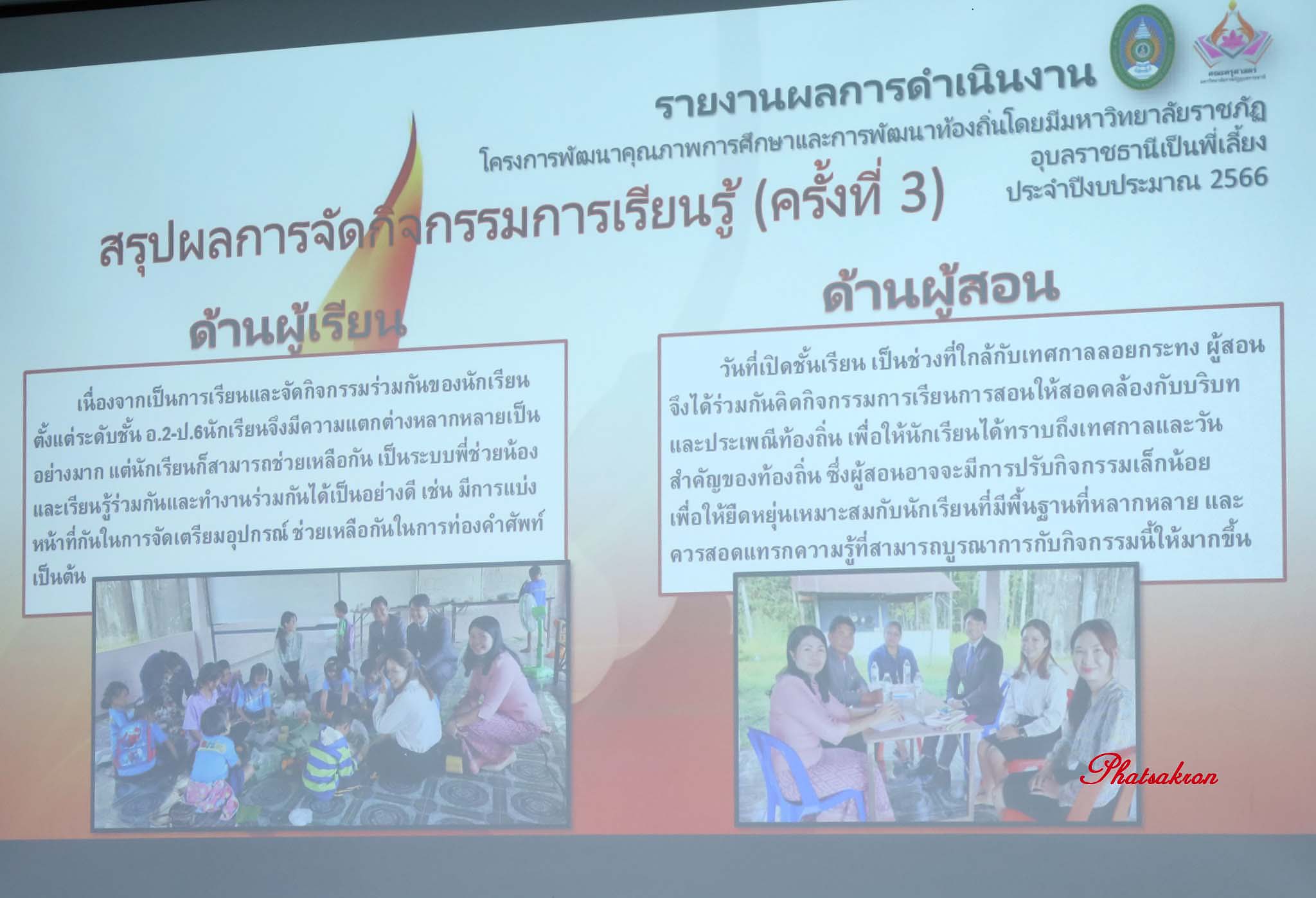 การนำเสนอผลงานและถอดบทเรียน โครงการพัฒนาคุณภาพการศึกษาและการพัฒนาท้องถิ่น โดยมีมหาวิทยาลัยราชภัฏอุบลราชธานี เป็นพี่เลี้ยง ปีงบประมาณ ๒๕๖๖