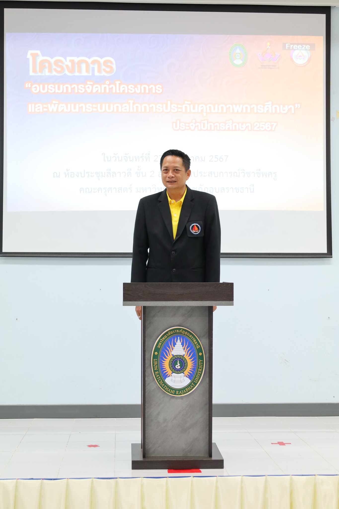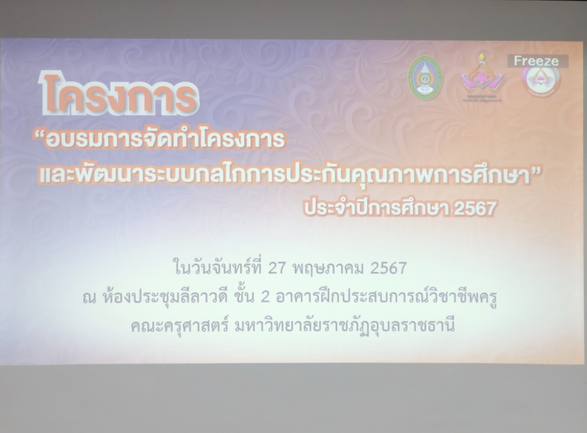วันที่ ๒๗ พฤษภาคม ๒๕๖๗ ผู้ช่วยศาสตราจารย์ดร.นเรศ ขันธะรี คณบดีคณะครุศาสตร์ เป็นประธานในเปิดโครงการพัฒนาระบบกลไกการประกันคุณภาพการศึกษาของนักศึกษาคณะครุศาสตร์มหาวิทยาลัยราชภัฏอุบลราชธานี ณ ห้องลีลาวดี อาคาร ๓๒A คณะครุศาสตร์ มหาวิทยาลัยราชภัฏอุบลราชธานี